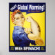 Humorer Rosie, das Riveter-Poster-Spoof; eine große, vorbewaffnete, ankertätowierte Rosie, die sich gegen die Erderwärmung einsetzt, indem sie Vegan geht und Spinat isst. Poster, T - Shirt, Karten, Geschenke.