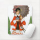 Vintage Zwanzigerjahre arbeiten die Illustration um, die ein Modell in einer Sportkleidungsausstattung mit übertriebenem Kragen und Stulpen mit einem gemusterten Regenschirm der Rose zeigt.