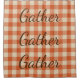 Ein karierter Duschvorhang aus Rost-Orange und Creme-Büffel ist ein einzigartiges und auffälliges Element in der Badezimmerdekoration, das klassische Muster mit warmen, erdigen Farben kombiniert. Das Wort "Gather" ist anpassbar, sodass Sie es ändern können, um Ihr Lieblingswort wie Dankbar oder Dankbar hinzuzufügen. Das karierte Büffel besteht aus großen, gleichgroßen Quadraten oder Streifen, gewöhnlich in einer zweifarbigen Kombination. In diesem Fall sind die Rost-Orange- und Cremetafeln oder Streifen in einem Schachbrettmuster angeordnet, wodurch eine zeitlose und rustikale Ästhetik entsteht.