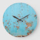 Rostblaues Metall: Texturierte Wand. Große Wanduhr