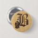 Eine gotische Schriftartinitiale B gemasert im rostigen Metall, verziert mit einer Fantasieklinge und einem rostigen Rittersturzhelm. Einzigartiges Monogramm für einen personalisierten Knopf!