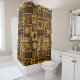 Geben Sie Ihrem Badezimmer ein Stammes- Gefühl mit diesem Duschvorhang in einem hawaiischen Tapaentwurf und die Petroglyphe-Krieger und honu kennzeichnen, gemalt in den Farben von verrostet und brüniert.