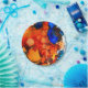 Abstrakte Kunstrost inspiriert orange und blau aus dem Original Alkoholtupfer. Strenge Farben.