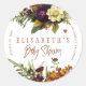 Glam elegante rostige Orange, Bordeaux, lila Pflaume und Elfenbein-Creme botanischer Aufkleber mit Kupferkrüge Glitzer, handschriftlich wie ein weißes Typografie-Skript und ein kleines Herz gebürstet. ++++++++ Einfach mit Ihrem Namen, Datum und Ort der Veranstaltung personalisieren. +++++++++++ Geeignet für Herbstfälle moderne, glamouröse Baby- oder Mädchendusche-Party.