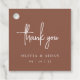 Entworfen, um unsere modernen handgeschriebenen Skripteinladungen zu erfüllen. Ein wunderschönes typografisches Design mit minimalistischem Ambiente, mit "danke" und zwei Textzeilen in modernem handgeschriebenem Skript und klassischem Serifenschreiben auf Terrakotta Rosthintergrund.