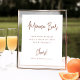 Mit diesem schlichten und eleganten Schild mit der Terrakotta-Rostschild auf weißem Hintergrund können Sie Ihre Hochzeit oder Ihre Dusche mit Mimosa-Bar abschließen. "Mimosa Bar" oder Ihr eigener Header erscheint oben in der modernen handgeschriebenen Schrift. Personalisieren Sie diese mit kurzen Anweisungen, "Cheers" und Ihren Namen und/oder Veranstaltungsdatum unten.