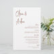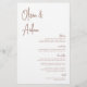 Entworfen, um unsere modernen handgeschriebenen Skripteinladungen zu erfüllen. Ein wunderschönes typografisches Design mit minimalistischem Ambiente, mit modernen Terrakotta Rost handgeschriebenen Schriften und klassischen Serifenschriften. Personalisieren Sie Ihre Menüelemente mit acht benutzerdefinierten Textfeldern.