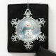 Celebrate your little one’s first holiday with a frosty friend full of joy. This charming snowflake ornament features a smiling snowman in a cozy green scarf and top hat, surrounded by gently falling snow. The elegant silver frame and “Baby’s First Christmas 2025” inscription make it a perfect keepsake for commemorating this magical milestone. A heartwarming gift for new parents, grandparents, or anyone welcoming a wintertime bundle of joy.