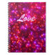 Helles, hübsches, funkelnd-rosa Spiralheft mit dem Wort "Liebe" in rosa geschrieben. Ein perfektes kleines Geschenk für den Valentinstag!