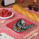 Rotes, abstraktes Herz auf roten Tellern. Spaß für jedes Party.