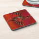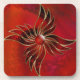 Ein abstraktes Werk in feurigen Rot und Gold. Ein deutliches rotes Juwel ist von goldfarbenen Flammen umgeben, die mit glitzernden Rubinen und gelben Sternexplosionen geschmückt sind. Die wirbelnden, spiralisierenden Fraktale im Hintergrund erscheinen in tieferen Farbtönen im goldenen Filigree des Flammenmotivs.