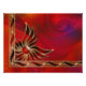 Ein abstraktes Werk in feurigen Rot und Gold. Ein deutliches rotes Juwel ist von goldfarbenen Flammen umgeben, die mit glitzernden Rubinen und gelben Sternexplosionen geschmückt sind. Die wirbelnden, spiralisierenden Fraktale im Hintergrund erscheinen in tieferen Farbtönen im goldenen Filigree des Flammenmotivs.