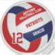 Dieser speziell für Volleyball konzipierte Vinyl-Aufkleber zeigt das realistische Bild eines roten, blauen und weißen Volleyballs, auf dem Sie den Namen und die Jersey-Nummer des Spielers sowie den Teamnamen und den Maskottnamen in einem Schriftart im Stil von katz_d_zynes einstellen können.