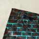 Rot und blau gefärbt, Kratzer, Rot oder anders und schiefe Ziegelwand mit blauem Fleck auf Ziegelgelenk.