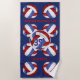 Dieses spaßige Strandtuch zum Thema Volleyball ist mit roten, blauen und weißen, stilisierten Volleybällen geschmückt, die in einem Spiegelmuster angeordnet sind, mit individuell definierbaren Texten zwischen den Volleyballs, dem aktuellen Teamnamen und Maskottennamen - der Name des Athleten und die Trikotnummer können personalisiert werden, sowie der dunkelblauen Hintergrundfarbe - von katz_d_zynes