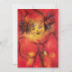 Farbiges, skurriles, lebendiges, künstlerisches Clownportrait mit extravagantem rotem Band, Aquarellmalerei in Rot, Gelb, Braun, inspiriert vom Karneval von Venedig. Elegantes Design, leicht mit Ihren Initialen und Ihrem eigenen Text zu gestalten.