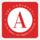 Rot | Circle Monogram Rücksendeadresse Quadratischer Aufkleber