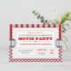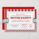 Laden Sie jeder zu Ihrer Geburtstag Film-Nacht mit dieser Spaßeinladung ein, die wie eine Filmaufnahmekarte entworfen ist. Weiße Karte, mit Text in Rotem und in Schwarzem mit rotem Tupfen des Spaßes und gestreiften Mustern auf einem hellgrauen Hintergrund. Auch verfügbar in einer Vielzahl der zusätzlichen Farbschemas.