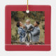Der süße und einfache Weihnachtsschmuck ist minimalistisch gestaltet, mit Ihrem Familiennamen und dem Jahr in sauberer, klassischer Serifenschrift auf festlichem rotem Hintergrund. Ein kleiner Bogen durch die Mitte vervollständigt das Design. Fügen Sie der Rückseite ein Foto hinzu, hervorgehoben mit einer passenden Bogen-Abbildung.