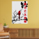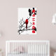 Free to fly Red Version. Vogel auf einem schwarzen Baum mit japanischem "Free to fly" Zitat. Karo aus den anderen Farben.