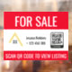 Dies ist ein einfaches "For Sale" QR Code reales Anwesen Vinyl Fensterkleber in einem modernen minimalistischen Stil mit einem lebendigen rot-weißen Farbschema. Der Real Anwesen Agent und andere Texte können mit einem Firmenlogo und QR-Code für die Immobilien-Auflistung (Haus, Grundstück oder Grundstück zum Verkauf) angepasst werden. Großartiges Anwesen-Werbe- und Marketing-Tool für Ihr Unternehmen.