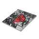 Rot gemaltes Liebeherz auf Graffiti umfaßte Schwarzweiss-Wandhintergrund. Selektive Sättigung.