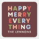 Entwickelt zur Abstimmung mit der Grußkartenkollektion "Happy Merry Wavy", zeigt dieser verspielte Feiertagsaufkleber den lustigen, unkonventionellen Gruß "Happy Merry Everything" in verschiedenen Farben, was dem Design eine gewisse Leichtigkeit verleiht. Direkt unter dem Gruß ist Platz für den Namen des Kunden. Diese Aufkleber eignen sich hervorragend zum Beschriften von Geschenken und Partygeschenken oder können zum Verschließen der passenden "Happy Merry Wavy"-Umschläge verwendet werden.