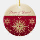 Erinnern Sie sich an Ihren besonderen Tag mit diesem wunderschönen Glitzer aus Rot und Gold (PRINTED) Schneeflocken rund um die Keramik erste Weihnachten zusammen mit Sake-Ornament, das mit den Namen der Braut und Bräutigam, und das Jahr angepasst werden kann. Sie können den Text anpassen, um zu sagen, was Sie gewollt haben. ****Bitte stellen Sie sicher, dass Ihr Text an der Stelle platziert ist, an der Sie ihn gewollt haben, da er wie auf Ihrem Monitor ausgegeben wird. Zazzle wird nichts korrigieren. Es passt auch zu der Hochzeitseinladung unten gezeigt. Wenn Sie eine andere Form haben möchten oder Hilfe benötigen, schreiben Sie bitte an niteowlstudio@gmail.com.