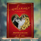 Erleben Sie die Eleganz und Romantik Ihrer Hochzeit oder Ihres Jubiläums mit unserem atemberaubenden Red and Gold Theme Foto in einem herzförmigen Akryllischen Zeichen. Ein wahres Symbol für Liebe und Feiern!