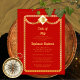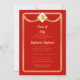 Ein goldenes Graduierungspapier und ein abgerundeter Serpentinrahmen mit goldenem Rahmen und rotem Graduiertenpartydesign, das für High School-, Uni-, Hochschul- oder Berufsschüler personalisiert sein kann. Composite Design von Holiday Hearts Designs (Rechte vorbehalten).