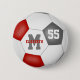 Dieser personalisierte Fußball-Button für Mädchen (oder Jungen) zeigt das realistische Bild eines Fußballballs mit roten, grauen und weißen Paneelen - passen Sie den Namen, die Monogrammnummer und die Jerseynummer des Spielers an - von katz_d_zynes