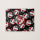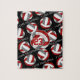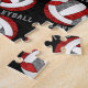 Dieses Volleyballmusterpuzzle für Mädchen enthält einen größeren künstlerischen, grauen und weißen, stilisierten Volleyball, auf dem ihr Name und ihre Trikotnummer personalisiert werden können, der sich aus kleineren roten, grauen und weißen Volleybällen auf schwarzem Hintergrund und "I Liebe Volleyball" im Stil eines Varsity-Letters zusammensetzt und sich zwischen den gewundenen Reihen von Volleyballs erstreckt - Katz_d_zynes