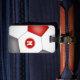 Dieses soccer-Thema Gepäckanhänger ist einfach mit einem abstrakt vergrößerten Single aus rot, grau und weiß Fußball - personalisieren Sie mit Monogramm auf der Vorderseite, Adressdaten auf der Rückseite - von katz_d_zynes