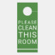 Minimalistisch stören Sie das rote Schild nicht mit einem weißen Typografiezeichen. Die andere Seite ist grün mit Bitte säubern Sie dieses Zimmer in modernen weißen Buchstaben.