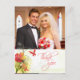 Diese stilvolle schicke Hochzeit Danke Foto Postcard hat ein rotes und grünes Aquarell Blumendesign mit zwei Schmetterlingen fliegen am unteren verlassen. Im unteren Teil befindet sich eine weiche graue Silhouette einiger Blume von Seerosen. Im Hintergrund ist ein sanftes grün bedrücktes Aussehen. Oben können Sie das ganz einfach mit Ihrem Foto anpassen. Unten rechts, Vielen Dank ist in einem trendigen, wirbelnden Schriftart geschrieben. Auf der Rückseite, können Sie leicht personalisieren die Danksagung Nachricht zusammen mit den Namen der Braut und Bräutigam und das Datum der Hochzeit Zeremonie. Dies ist ein erschwinglicher Weg, um Ihnen zu sagen Vielen Dank an alle Ihre Freunde und Familie, die ein Teil Ihres Hochzeitstages waren.