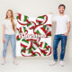 Dieses lustige Volleyballspiel-Fleecedecke kann mit dem Namen des Athleten personalisiert werden, der auf dem Bild eines Hundes verschiedener Größen roter, grüner und weißer Volleybälle - die Volleybälle sind selektiv schattiert für ein einzigartiges 3D-Aussehen - von katz_d_zynes
