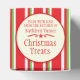 Niedliche Backpacker-Geschenkboxen in rot und grün gestreift, ideal für Weihnachtsgebäck-Party oder für den Verkauf von hausgemachten Produkten auf Bauernmärkten und Handwerksmessen rund um die Weihnachtszeit. Benutzen Sie diese Kisten, um Ihnen die Essensproben Ihrer Weihnachtsgeschmack zu geben. Ideen für kleine Geschenke, die Sie anderen geben, oder für Kindergärten für Familie und Freunde. Derzeit liest Made mit Liebe aus der Küche von Kathleen Turner Weihnachtsfeiertage Leckereien. Vollständig anpassbar, um Ihren eigenen Namen und Ihre Produktdetails zu personalisieren. Einzigartig gestaltet von Sarah Trett.