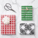 Rot-grünes Schwarz-Weiß-Muster Geschenkpapier Set