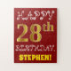 Dieses lustige und einfache Geburtstagsrätsel-Design beinhaltet die Meldung "HAPPY 28. BIRTHDAY", mit dem "28." ein Imitat/Imitation goldfarbigen Aussehen. Es verfügt auch über einen individuelle Name und einen roten Hintergrund. Es könnte eine lustige und besondere Art sein, jemandem, der seinen achtundzwanzigsten Geburtstag feiert, einen personalisierten Geburtstag zu schenken. [~Z0000200]