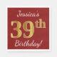 Rot, Imitate Gold 39. Geburtstag + Individuelle Na Serviette