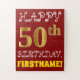 Dieses lustige und einfache Geburtstagsrätsel-Design beinhaltet die Meldung "HAPPY 50 th BIRTHDAY", mit dem "50." ein Imitat/Imitation goldfarbigen Aussehen. Es enthält auch einen benutzerdefinierten Namen und einen roten Hintergrund. Es könnte eine lustige und besondere Art sein, jemandem, der seinen fünfzigsten Geburtstag feiert, einen personalisierten Geburtstag zu schenken. [~Z0000200]