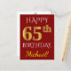 Rot, Imitate Gold 65. Geburtstag + Individuelle Na Postkarte