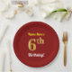 Rot, Imitate Gold 6. Geburtstag + Individuelle Nam Pappteller