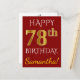 Rot, Imitate Gold 78. Geburtstag + Individuelle Na Postkarte