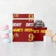 Dieses Packpapier-Design enthält eine Nachricht wie "9. BIRTHTAG DES ERSTEN NAMENS!", mit dem "9." mit einem goldfarbigen Imitat/Imitation und mit dem Namen und "BIRTHDAY" in einem lustigen, kühlen Schriftart. Der Name kann personalisiert sein, der Hintergrund ist rot. Papier wie dieses könnte vielleicht benutzt werden, um Geburtstagsgeschenke zu verpacken, die jemandem zur Feier seines neunten Geburtstages gegeben werden. [~Z0000204]