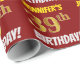 Dieses Verpackungspapier-Design enthält eine Nachricht wie "JENNIFER'S 39. BIRTHDAY!", mit dem "39.", der ein goldenes Imitat/Imitation-farbiges Erscheinungsbild hat, und mit dem Namen und "BIRTHDAY" in einem lustigen, kühlen Schriftart. Der Name kann angepasst werden, der Hintergrund ist rot. Ein solches Papier könnte vielleicht benutzt werden, um Geburtstagsgeschenke zu verpacken, die jemandem zur Feier seines neununddreißigsten Geburtstages gegeben werden. [~Z0000204]
