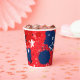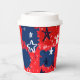 Rot mit blauen Spritzern und Schwarz-Weiß-Stars Pappbecher