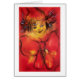 Farbiges, skurriles, lebendiges, künstlerisches Clownportrait mit extravagantem rotem Band, Aquarellmalerei in Rot, Gelb, Braun, inspiriert vom Karneval von Venedig. Elegantes Design, leicht mit Ihren Initialen und Ihrem eigenen Text zu gestalten.