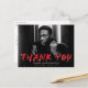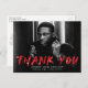 Stilvolle, moderne Abschluss danke Ihnen Postcard mit dem waagerechten Foto des Absolventen mit "Danke" in roter Schrift mit weißen Spritzern. Personalisieren Sie die Vorderseite des Dankes Postcard, indem Sie den Namen des Absolventen, den Schulnamen und das Abschluss Jahr. Auf der Rückseite des Abschlusses danke Ihnen postcard verfügt über Ihre Rücksendeadresse und Platz für eine getippte oder handgeschriebene Dankeschön-Nachricht.