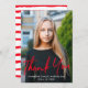 Moderner Abschluss Dankeschön-Karte mit dem Foto des Absolventen mit "Danke" in roter Pinselschrift. Personalisieren Sie die Vorderseite des Foto Abschluss danke Ihnen Karte, indem Sie den Namen und Abschluss des Absolventen Jahr. Die Rückseite der Karte bietet Platz für Ihre eingegebene oder handgeschriebene Danksagung mit einem rot-weiß gestreiften Hintergrund.